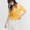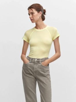 Showoff Women’s Round Neck Solid Yellow Crop Top